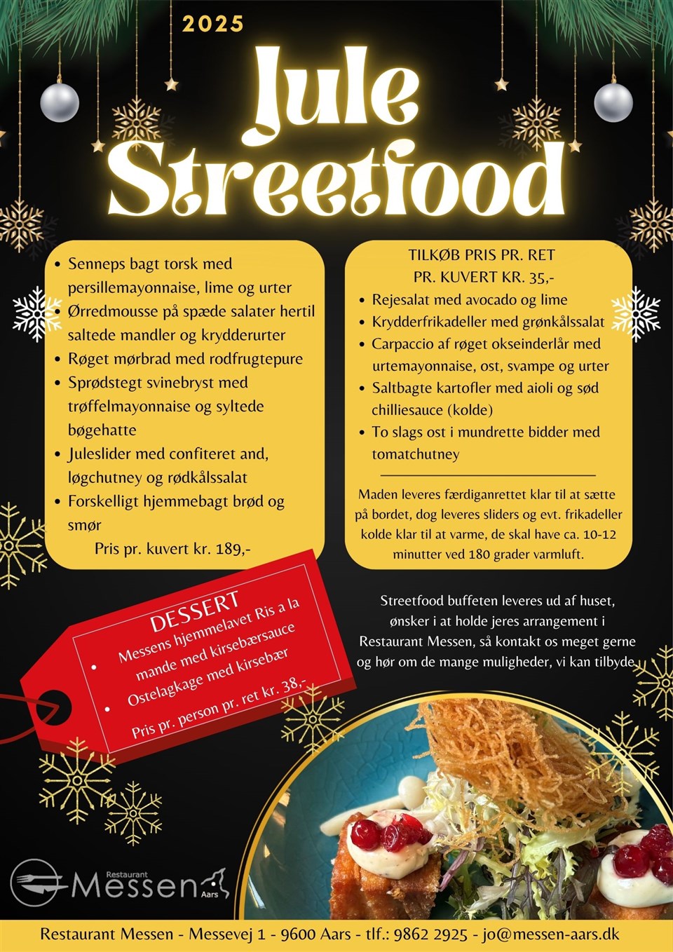 Julestreetfood - pris pr. kuvert kr. 189,-
