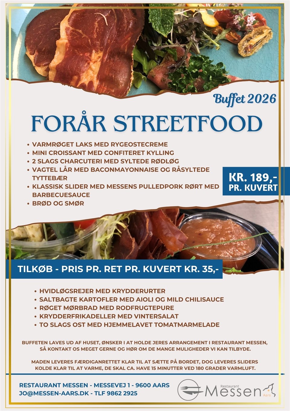 Restaurant Messen tilbyder i foråret 2026 Forår Streetfood buffet ud af huset.
